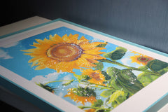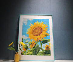 This was my first diamond painting, and I was drawn to this sunflower design. The diamonds are extremely shiny, and the resin square drills are of high quality. The final effect is stunning. I'm already considering my next purchase.